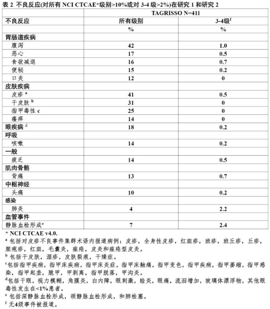 (上表为美国原厂药物Tagrisso(AZD9291)的副作用)
