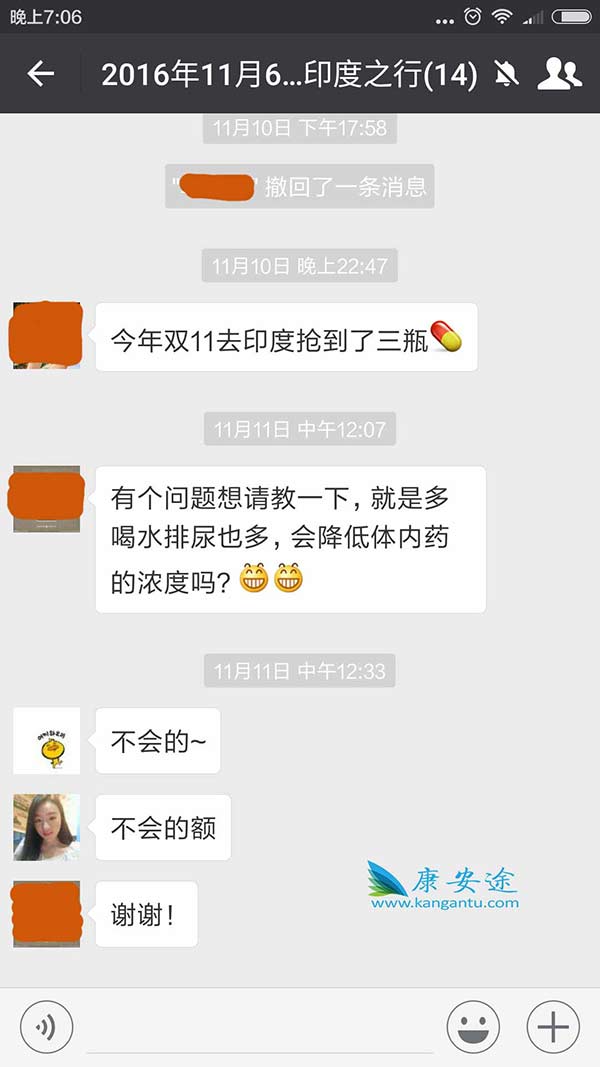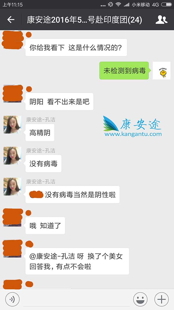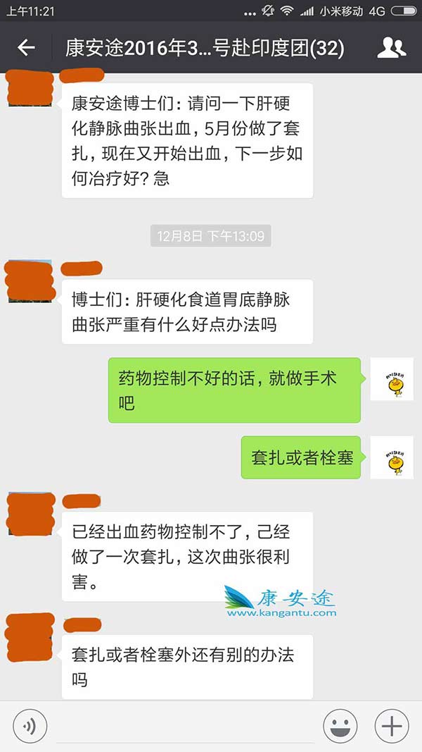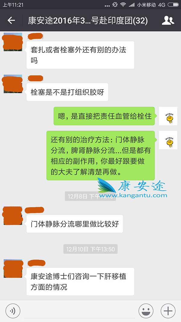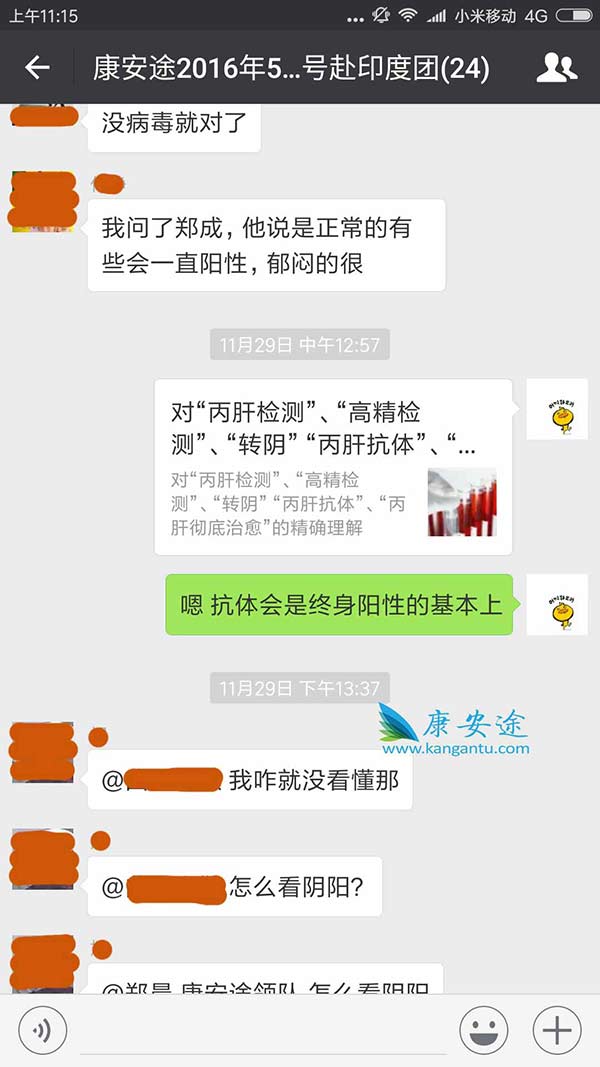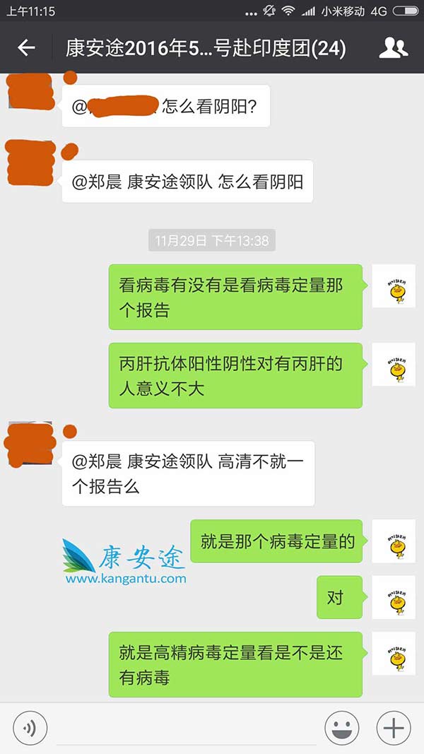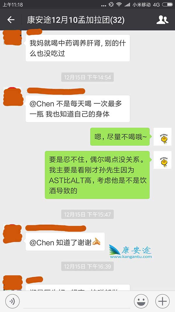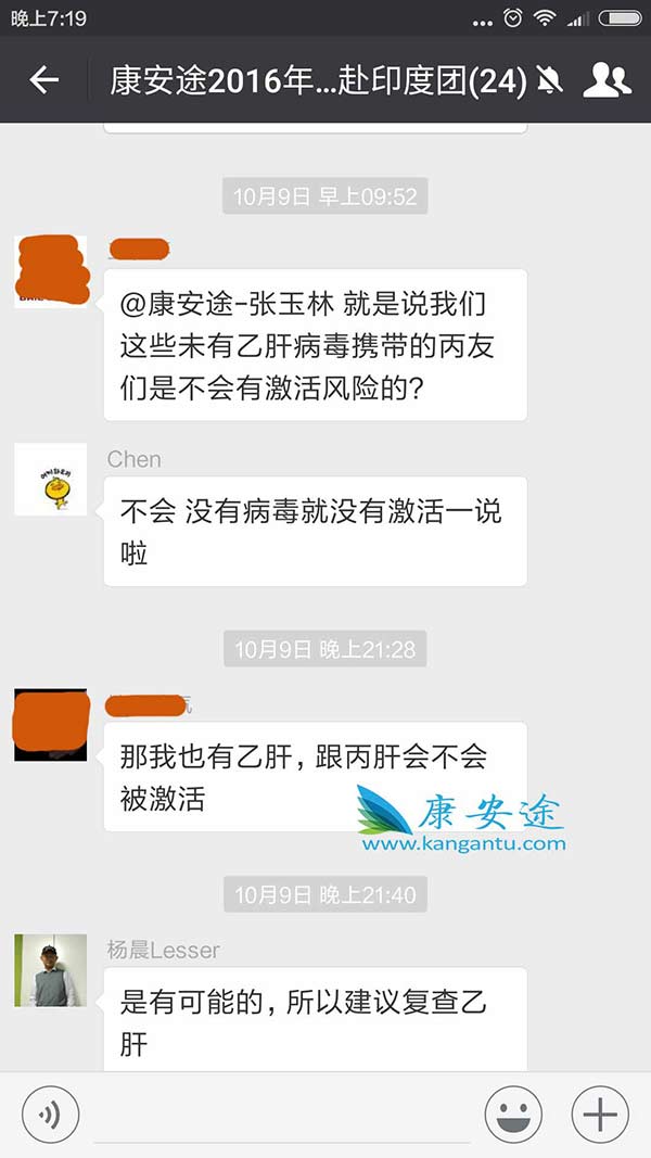 随康安途去印度就医的丙友团,每一个团都建立一个微信群,在群里,有康安途博士专家,患者在日常用药过程中任何疑问都可以提出来,让患者安心用药,快速康复。
