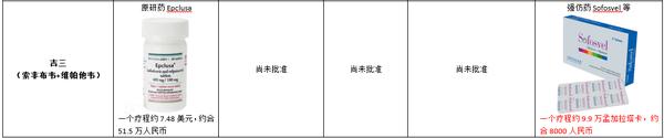目前由美国吉利德公司生产的吉二代用于治疗丙肝1型和6型,索菲(sovaldi)+达卡用于治疗所有基因型丙肝,丙肝治愈率接近100%!但关键问题是,该药在中国未获批上市,而且价格堪称“天价”。