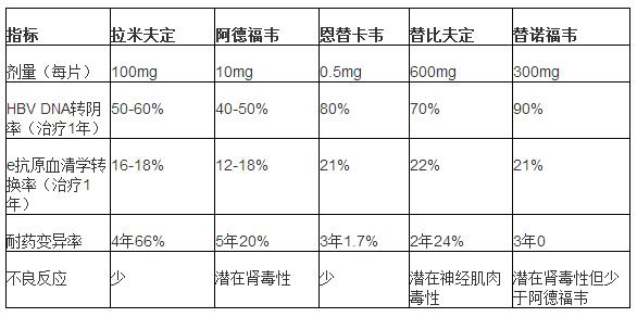 就抗病毒而言,以替诺福韦和恩替卡韦最强,这两个药是目前乙肝抗病毒药物的一线药物。同时也具有耐药门槛极高,毒副反应极低等特点。而替比夫定抗病毒作用稍差,拉米夫定更逊一筹,阿德福韦最弱。但因为每个患者多病情程度不同,临床实践与临床试验也不尽相同,所以具体选择哪种药,可以根据自身的情况,在医生多建议下来选择。例如拉米夫定最便宜,对于经济有困难的患者可能是一个不错的选择。