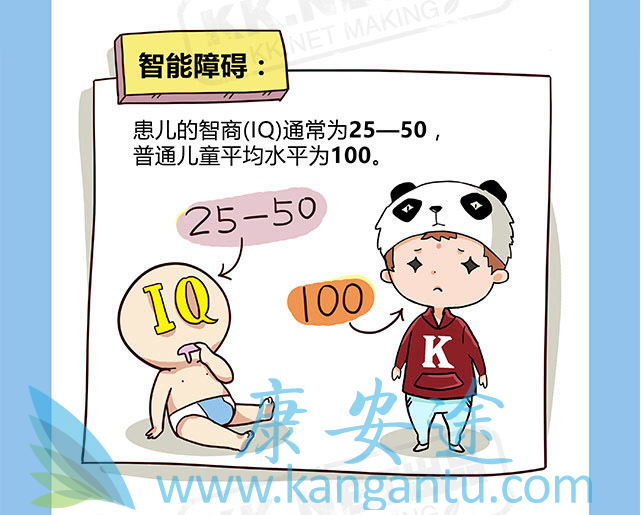 唐氏患儿的平均智商约为25-50,而普通儿童的智商平均水平约为100。
