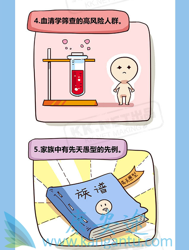 通过血清筛查出的高风险人群,以及家族中曾有先天愚型先例的人群。