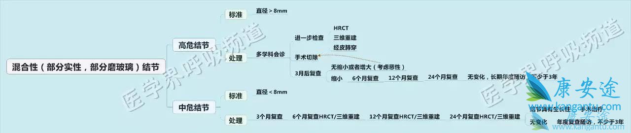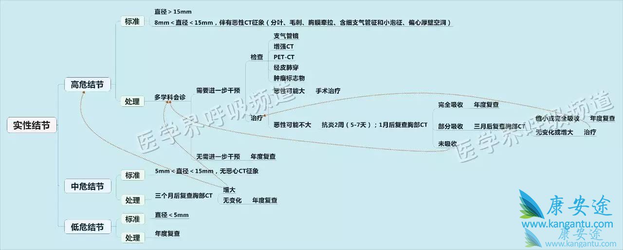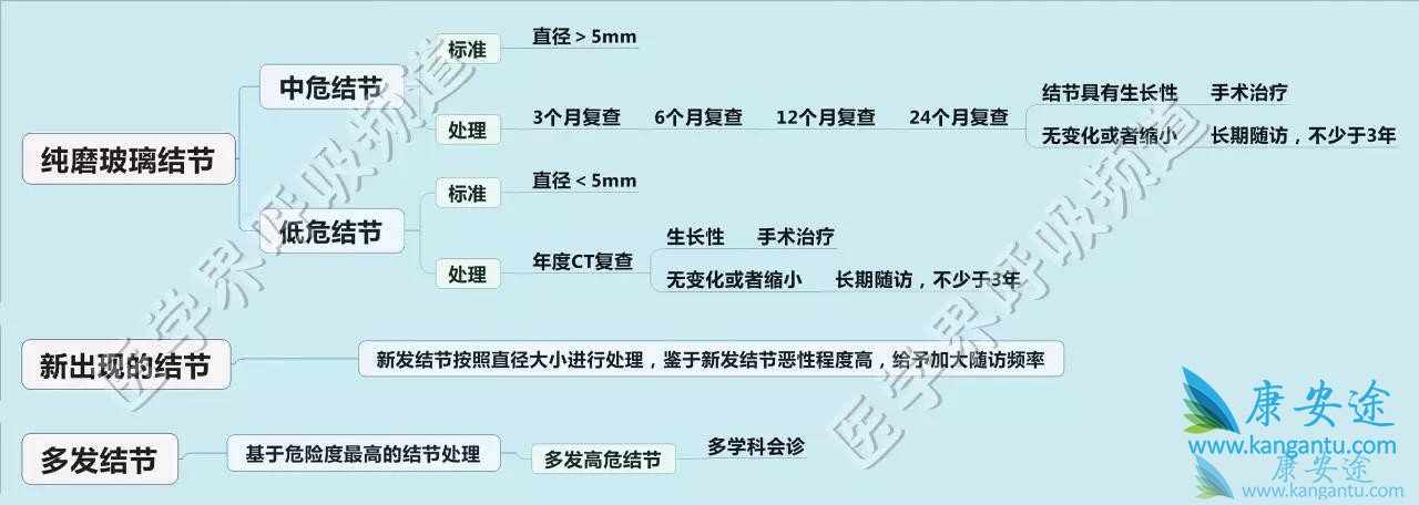 ​上图为肺结节处理程序思维导图,依据2016肺结节中国专家共识内容综合整理。(温馨提示:大家可以保存在手机上,随时可看~)