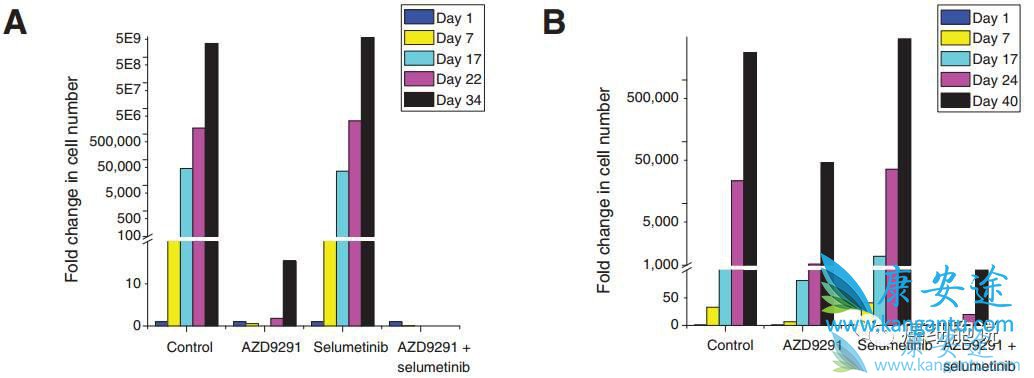 图6. DMSO、AZD9291、Selumetinib及AZD9291与Selumetinib联合用药