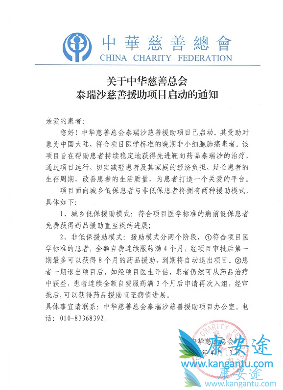 4.13日,中华慈善总会启动了泰瑞沙的援助项目,公告如下: