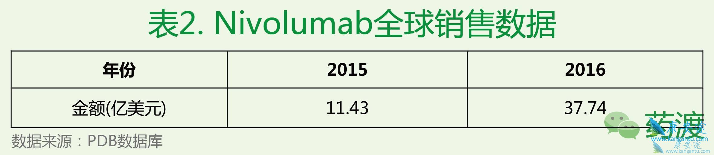 Nivolumab自2014年底批准上市后,可谓增势迅猛。2016年全球销售额达到了37.74亿美元,同比增长230%,位居同年全球药品排行榜第20位。