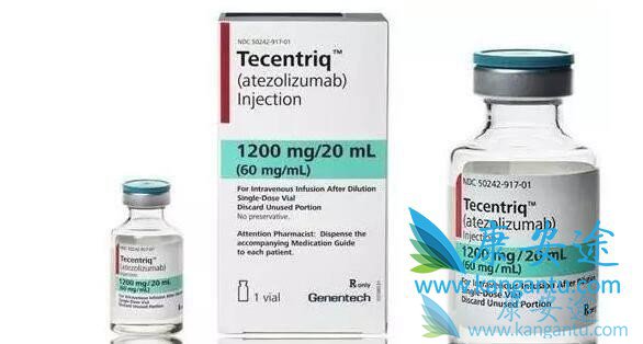 Atezolizumab是FDA批准的第三个阻断PD-1/PD-L1免疫抑制信号通路的药物,也是首个PD-L1抗体药物。非小细胞肺癌的获批基于两项研究:OAK研究和POPLAR研究。其中OAK研究结果显示,与多西他赛相比,Atezolizumab明显延长总生存期长达4.2个月(OS:13.8个月 VS 9.6个月)。另一项POPLAR研究结果显示,与多西他赛相比,Atezolizumab明显延长总生存期2.9个月(OS:12.6个月 VS 9.7个月)。