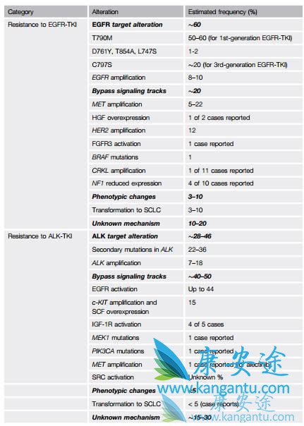 ▲EGFR-或ALK-阳性肺癌使用相关TKI靶向药治疗后耐药的机理和频率(图片来源:Cell官网)