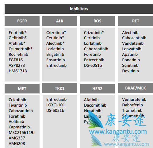 很多读者也许都知道: EGFR敏感突变,可以考虑吃吉非替尼、厄洛替尼、阿法替尼;EGFR T790M突变可以吃泰瑞沙®(甲磺酸奥希替尼片,AZD9291)等;ALK重排/ ROS1变异,可以考虑吃克唑替尼(crizotinib)等。这些著名靶向药,都属于“酪氨酸激酶抑制剂(TKI)”。