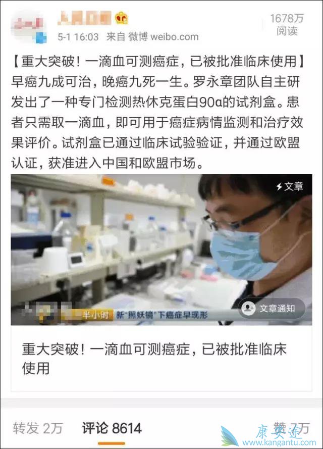 “一滴血可测癌症”是真的吗?请赶紧告诉爸妈…