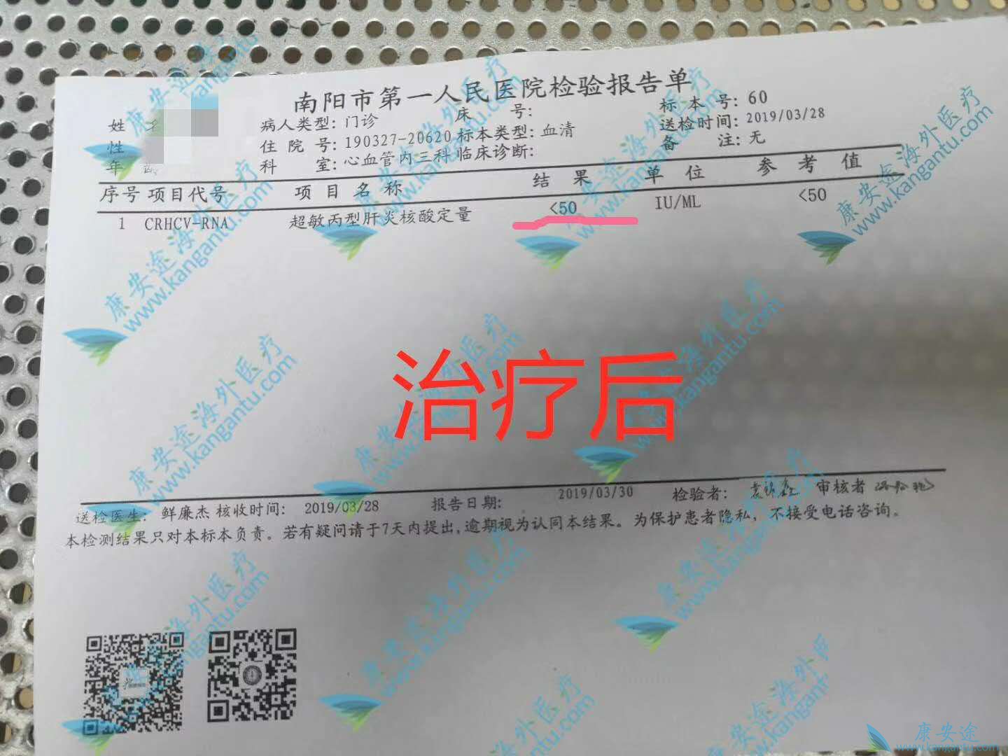 丙肝患者吉三代治疗后超敏丙肝病毒量检查低于检测下限