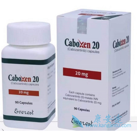 孟加拉珠峰版卡博替尼:商品名:Caboxen,胶囊剂型,20mg*90粒售价3200元左右;80mg*30粒售价约3400元左右。