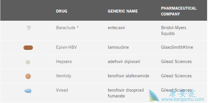 恩替卡韦、拉米夫定、阿德福韦酯、替诺夫韦酯,Vemlidy(TAF)。