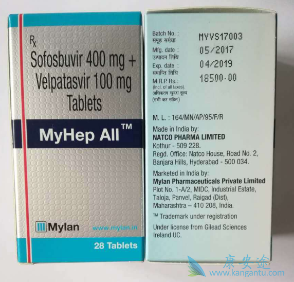 孟加拉的吉三代上市时间以及价格孟加拉上市:2016年7月28日,8月17日首批产品sofosvel正式发售。孟加拉药厂:Beacon碧康制药公司。孟加拉费用:1万人民币左右。成分包装:400mg索菲布韦+100mg维帕他韦,6片/盒。下面我们再来看看印度仿制版本:印度上市:2017年5月16日,MYLAN的MyHep ALL首个由美国吉利德公司官方授权的仿制药。印度药厂:MYLAN,NATCO。印度费用:一个疗程6000人民币左右成分包装:400mg索菲布韦+100mg维帕他韦,28片/瓶。