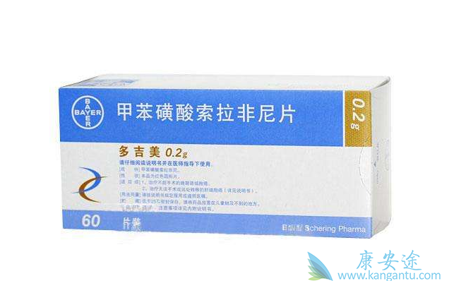 多吉美是白色至淡黄色或浅棕色固体,多吉美主要成分为甲苯磺酸索拉非尼,是一种多激酶抑制剂。