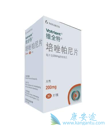 ②晚期软组织肉瘤患者:为了进一步评估帕唑帕尼的有效性和安全性,并将其与安慰剂作为对照,进行了III期临床试验。在本试验中,以无进展生存期作为评价指标。实验结果为无进展生存期在帕唑帕尼组为4.6个月,安慰剂组为1.6个月。帕唑帕尼组的无进展生存期明显长于安慰剂组。在另一分组中,帕唑帕尼组的无疾病进展生存期为24.7周,显著长于安慰剂组的无疾病进展生存期7.0周;帕唑帕尼组平均总生存期为12.5个月,安慰剂组为10.7个月。证明帕唑帕尼效果显著。
