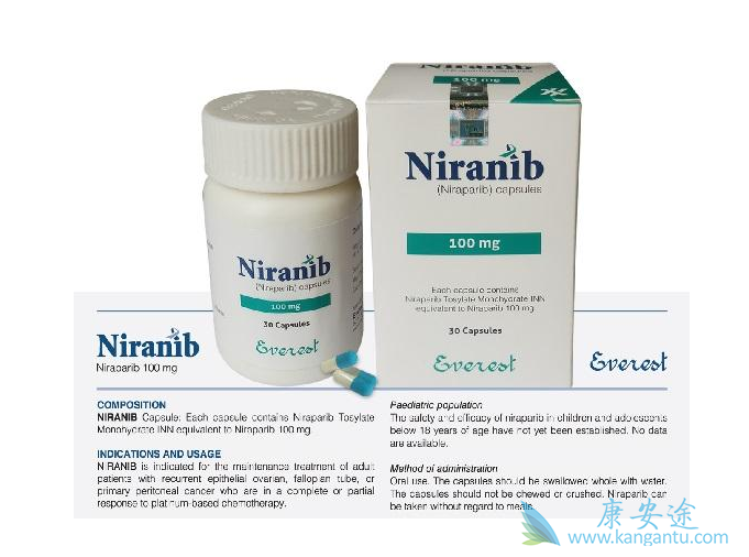 尼拉帕尼原研药价格非常贵,据说一个月要超过十万,吃得起的少之又少,现在孟加拉仿制的尼拉帕尼已经成功上市,由everest生产,瓶装,每瓶30粒,100毫克的规格,一个月需要3盒,价格比原研药便宜了很多。卵巢癌是一种妇科恶性肿瘤,发病率在妇科恶性肿瘤中排第三位,但死亡率超过宫颈癌和子宫内膜癌之和,高居妇科恶性肿瘤首位。在过去三十年,卵巢癌临床治疗上没有能有效延长患者生存期的药物,而在2018年上市的奥拉帕利和尼拉帕利,改变了卵巢癌没有靶向药的的尴尬局面,标志着卵巢癌正式进入PARP抑制剂(靶向)治疗时代。