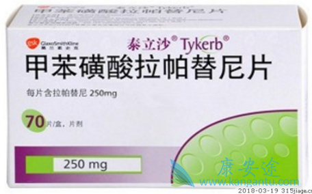 拉帕替尼(Tykerb)是一种小分子的口服抗HER2和抗HER1的酪氨酸激酶抑制剂,在临床前实验中显示出与T不同的作用,可使信号网络的抑制作用更强,还可阻断截短的HER2受体的信号通路。已有研究显示,拉帕替尼可能能够对乳腺癌干细胞有所抑制,与曲妥珠单抗没有交叉耐药,对脑转移有中等强度的抑制作用。