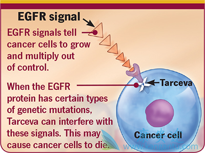 Tarceva不是常规化疗药物。Tarceva可以影响健康细胞和癌细胞,但其工作方式尚不完全清楚。Tarceva可能会干扰称为表皮生长因子受体(EGFR)的特定蛋白质的活性。一些癌细胞具有可能有助于其生长和分裂的EGFR突变。您的医疗保健提供者将进行测试,以确定您的癌症是否具有EGFR突变,并确保Tarceva适合您。