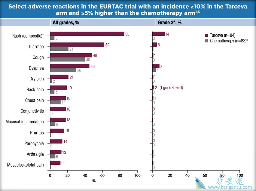 *除了背部疼痛(一名Tarceva患者)外,本表中不存在任何不良反应,严重程度为4级。3
