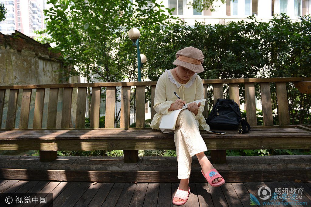 这些年,潘文艺的父母都是靠外出打工来供她和弟弟上大学,加上还有年迈的爷爷奶奶需要照顾,家庭经济并不宽裕。潘文艺只有求助于朋友,后来在同学的帮助下通过网络发起筹款,得到了好心人的爱心帮助,顺利得到了治疗。图为潘文艺在病床上治疗,看书备战复习想考研究生。