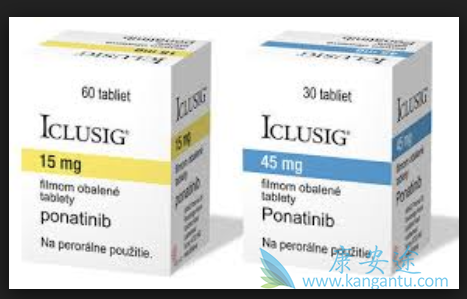 通过在大多数CML患者发现的表达Philadelphia染色体遗传突变细胞百分率减低,重大细胞遗传学反应(MCyR)证实药物的有效性。所有患者的54%和70%患者有T315I 突变实现MCyR。在分析时尚未达到MCyR的中位时间。在CML和Ph+ ALL加速和母细胞相,通过经历白细胞计数正常化或无白血病证据(重大血液学反应或MaHR)患者数确定Iclusig的有效性。结果显示:有CML加速相患者52% 经历MaHR中位时间9.5个月;有母细胞相CML患者31%实现MaHR中位时间4.7个月; 和有Ph+ ALL患者41%实现MaHR中位时间3.2个月。Iclusig正在被批准有一个黑框警告警告患者和卫生保健专业人员药物可能致血液凝固和肝脏毒性。临床试验期间最常报道副作用包括高血压,皮疹,腹痛,疲乏,头痛,干皮肤,便秘,发热,关节痛,和恶心。Iclusig是由在麻省剑桥的ARIAD药业上市, Bosulif是由位于纽约城的Pfizer上市,和Synribo是由位于滨州的Frazer, Teva药业上市。Marqibo是由加州旧金山的Talon Therapeutics公司上市。
