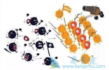 先来说“免疫系统”吧,人体的免疫系统就像是保卫我们祖国的士兵,巡逻、监视,看到坏蛋就立马干掉。而导致人体生病的因子,如肿瘤细胞、细菌,病毒等就如同侵犯我们祖国的大坏蛋,是敌人。