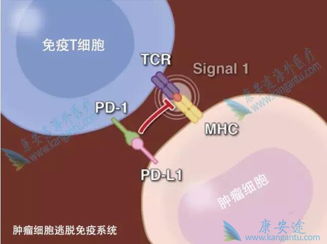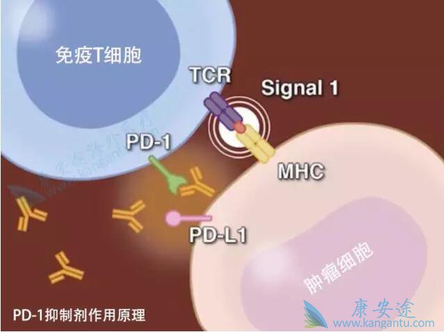 人体许多正常细胞表面有一个分子叫做PD-L,分为2种即PD-L1和PD-L2,这就像是大门的钥匙,可以让自己免受免疫系统的攻击。我们的免疫细胞表面则有一个专门识别PD-L的分子叫做PD-1,就像是国门的一把锁。而在一些恶性肿瘤中,肿瘤细胞可以在自身表面高表达PD-L这种分子。