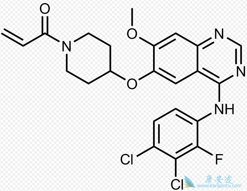 波奇替尼是Spectrum Pharmaceuticals公司研发的一种创新口服广谱HER抑制剂。它能够不可逆转地阻断所有HER家族酪氨酸激酶受体的信号传递。对携带外显子20插入突变的HER受体来说,有临床前试验表明poziotinib对它们的抑制效果是现有酪氨酸激酶抑制剂的几十倍。