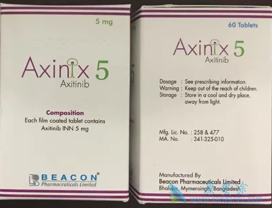 阿昔替尼(阿西替尼)参考用法用量:(1)阿昔替尼(阿西替尼)开始剂量为5mg口服每天2次。可根据个体安全性和耐受性调整剂量。(2)约间隔12小时给予阿昔替尼(阿西替尼)剂量有或无食物。(3)阿昔替尼(阿西替尼)应与一杯水整片吞服。(4)如需要强CYP3A4/5抑制剂,减低阿昔替尼(阿西替尼)剂量约半量,(5)对中度肝受损患者,减低阿昔替尼(阿西替尼)开始剂量约半量。