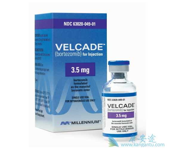 硼替佐米(Bortezomib)是首个应用于骨髓瘤治疗的蛋白酶体抑制剂,其可特异性抑制蛋白酶体的活性,抑制与细胞增殖相关基因的表达,减少白细胞介素6(IL-6)等骨髓瘤细胞生长因子的分泌和黏附因子的表达,最终导致肿瘤细胞凋亡。该药已被美国食品与药品监督管理局(FDA)批准应用于RRMM患者。