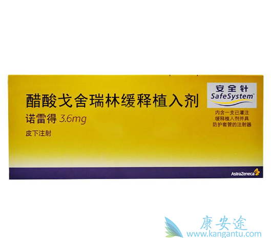 阿斯利康的戈舍瑞林缓释植入剂(商品名诺雷得)是一种注射用的促黄体生成素释放激素类似物,并可在体内逐渐生物降解的多聚缓释植入剂。使用时在患者腹前壁皮下注射,每28天或3个月注射一次。临床用于前列腺癌治疗;绝经前及围绝经期晚期乳腺癌;子宫内膜异位症治疗。