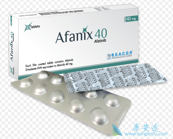 阿法替尼是表皮生长因子受体(EGFR)和人表皮生长因子受体2(HER2)酪氨酸激酶的强效、不可逆的双重抑制剂。阿法替尼适用于以下患者治疗:1具有表皮生长因子受体(EGFR)基因敏感突变的局部晚期或转移性非小细胞肺癌 (NSCLC),既往未接受过EGFR酪氨酸激酶抑制剂(TKI)治疗2含铂化疗期间或化疗后疾病进展的局部晚期或转移性鳞状组织学类型的非小细胞肺癌(NSCLC),阿法替尼与EGFR酪氨酸激酶区的结合是不可逆性的,所以阿法替尼相比一代药的效果更强,但是就是因为效果更强所以副作用也更大,而且阿法替尼对ErbB4的信号通路也有抑制作用,主要针对的是HER2突变,但也能治疗T790M突变,属于第二代靶向药。