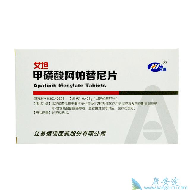 阿帕替尼(艾坦)可用于至少接受过2种系统化疗后进展或复发的晚期胃腺癌或胃-食管结合部腺癌患者的治疗,在用药过程中,阿帕替尼也存在不良反应。阿帕替尼常见不良反应包括血液学毒性(白细胞减少、粒细胞减少和血小板减少等)和非血液学毒性(高血压、蛋白尿、手足皮肤反应、乏力及腹泻等)。多数不良反应均可通过暂停给药、下调剂量及支持对症处理得以控制和逆转。阿帕替尼不良反应类型与索拉非尼等小分子靶向药物一致;高血压、蛋白尿和手足综合征是最常见的不良事件;大部分不良反应是一过性或可逆的。