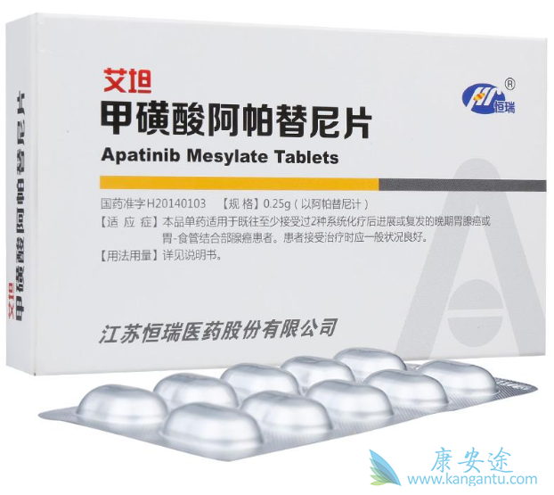 2014年10月,阿帕替尼(Apatinib)获批用于晚期胃腺癌或胃-食管结合部腺癌三线及三线以上治疗。最新的临床研究进展提示阿帕替尼用于晚期非小细胞肺癌、乳腺癌、前列腺癌、骨肉瘤及软组织肉瘤的二线和三线治疗也可使部分患者获益。但是在服用阿帕替尼期间,需要每日监测患者血压状况,因为服药后2周左右患者可能会出血血药升高,多为轻中度增高,多数患者可通过合并使用降压药使血压升高得到良好控制。因此服药期间需要常规监测血压的变化,血压应该控制在140/90mmHg以下的水平。