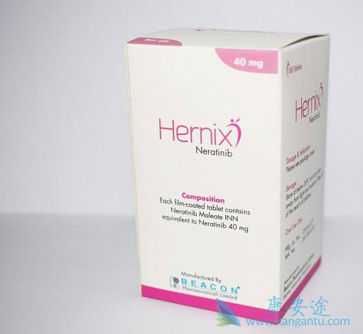 来那替尼,商品名Nerlynx,生产商Puma Biotechnology,属于一种激酶抑制剂,可不可逆的结合表皮生长因子受体、人表皮生长因子受体2和4。在体外可减低EGFR和HER2自身磷酸化,在体内可抑制肿瘤生长。