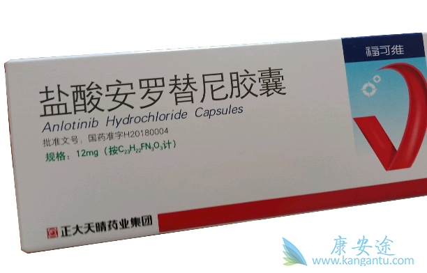 战绩三:小细胞肺癌。就在2019年8月30日,国家药品监督管理局(NMPA)官网显示:安罗替尼用于小细胞肺癌三线治疗的上市申请(CXHS1800039国)已审批完毕,并进入制证阶段,意味着安罗替尼三线治疗小细胞肺癌的适应证已经获批。相比安慰剂,安罗替尼将无进展生存期(PFS)延长了3.4个月,疾病进展或死亡风险降低了81%。