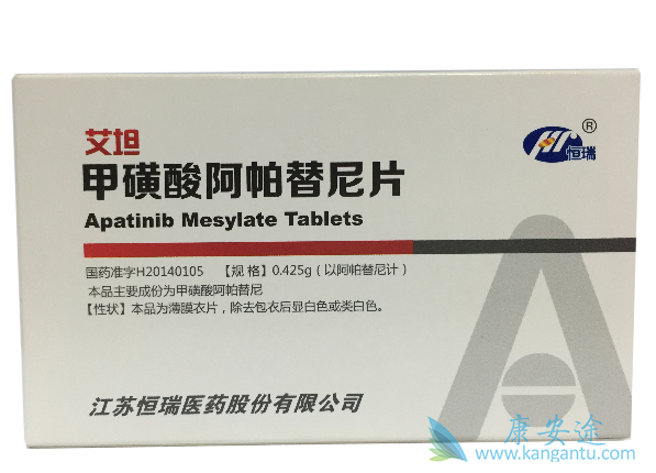该研究显示出阿帕替尼在延缓疾病进展方面的优势;无进展生存期(PFS)为6.31个月,总生存期(OS)也达到了8.43个月。此项研究中,患者最常见的不良事件包括高血压(69.0%)、疲劳(31.0%)和蛋白尿(23.0%),无任何3级或4级严重不良事件。如果患者出现不良反应,给予对症处理。