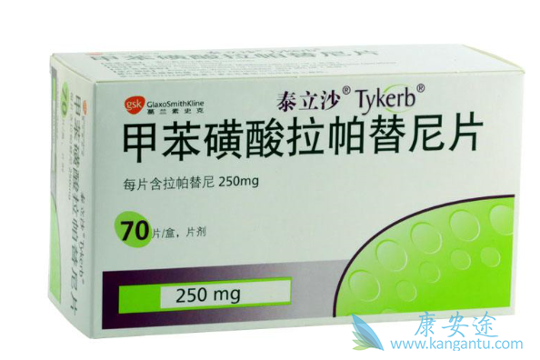 拉帕替尼(泰立沙)是小分子抑制剂,是一种口服的针对HER-1/ HER-2的可逆性小分子酪氨酸激酶抑制剂。泰立沙与能够通过双重阻断HER-1/ HER-2通路从而下调细胞增殖信号。临床主要用于治疗乳腺癌,不过患者需满足既往接受过包括蒽环类、紫杉类和曲妥珠单抗治疗。泰立沙一线治疗晚期乳腺癌,有效率为12~24%,不过临床常用于二线治疗,与卡培他滨联合,可以提高有效率。