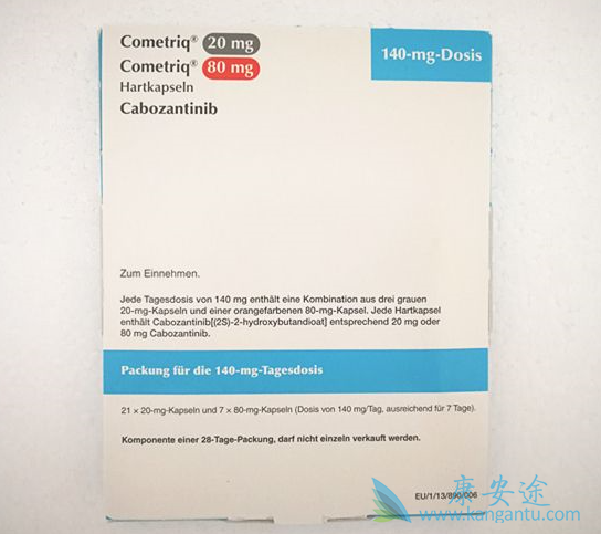 卡博替尼(Cometriq)是治疗既往抗血管生成治疗失败的晚期肾透明细胞癌的新药。作为一种口服的小分子酪氨酸激酶抑制剂,卡博替尼可抑制ret原癌基因、肝细胞生长因子受体、血管内皮生成因子受体-1/2/3、干细胞生长因子受体、酪氨酸激酶受体、血管内皮生长因子受体-3、AXL及上皮生长因子样域酪氨酸激酶-2的酪氨酸激酶活性。