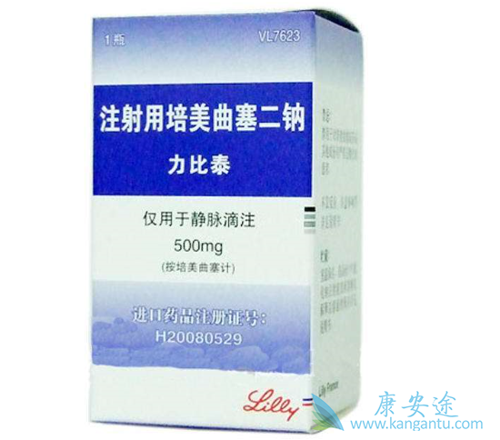 在临床中,80%以上的肺癌患者确诊时即为中晚期,对于无驱动基因突变的患者来说,化疗是主要的治疗方法。培美曲塞是由礼来制药研发的一种新型多靶点抗代谢类药物,商品名为力比泰,是一种结构上含有核心为吡咯嘧啶基团的抗叶酸制剂,通过破坏细胞内叶酸依赖性的正常代谢过程,抑制肿瘤细胞的DNA和RNA合成,从而抑制肿瘤的生长。