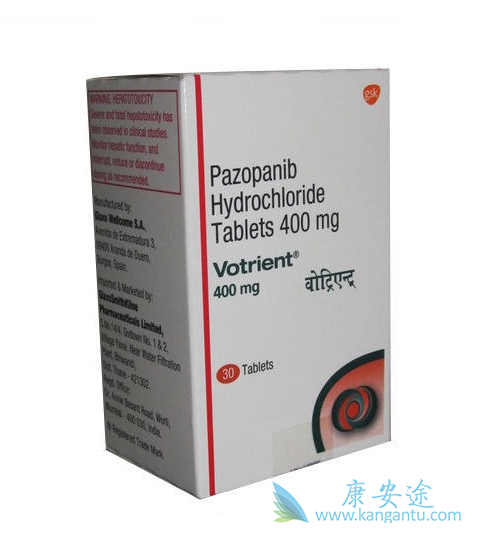 帕唑帕尼适用于晚期肾细脸蛋儿癌(一种在肾小管中发现癌细胞的肾癌类型),软组织肉瘤(STS)、上皮性卵巢癌和非小细胞肺癌(NSCLC)的治疗。帕唑帕尼800 mg口服每天1次不和食物一起服药(至少在进餐前1小时或后2小时)。基线中度肝损伤 – 口服200 mg每天1次。严重肝损伤患者不建议使用。