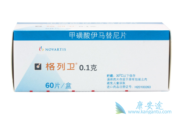 关于伊马替尼的使用说明书。药品名:伊马替尼;商品名:Gleevec;性状:胶囊;生产商:Novartis;剂量:100mg、400mg。适应症:用于治疗慢性粒细胞白血病(CML)急变期、加速期或α-干扰素治疗失败后的慢性期患者;不能手术切除或发生转移的恶性胃肠道间质肿瘤(GIST)患者。药物介绍:主要成分为甲磺酸伊马替尼,是一种酪氨酸激酶抑制剂,阻断促进癌细胞发展蛋白。
