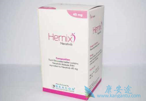 奈拉替尼(来那替尼,Nerlynx),是首个且唯一用于HER2阳性早期乳腺癌强化辅助治疗的小分子药物。它是口服的酪氨酸激酶抑制剂,其作用靶点广泛,通过胞内不可逆结合,同时抑制HER1/HER2/HER4信号通路。HER2阳性早期乳腺癌患者接受含曲妥珠单抗辅助治疗以后,序贯使用奈拉替尼能显著降低乳腺癌患者的复发风险。