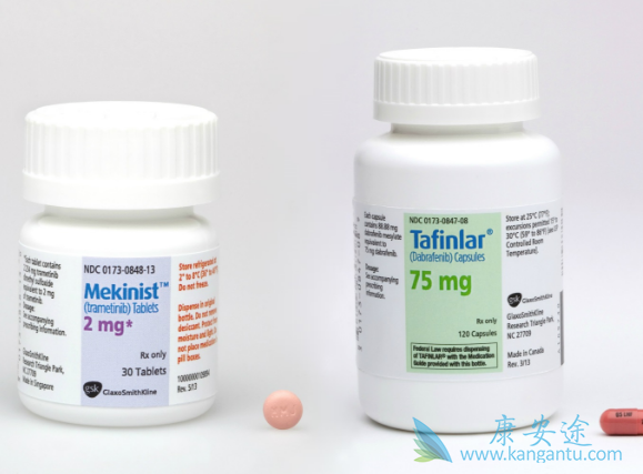 基于COMBI-AD研究的结果,达拉非尼联合曲美替尼于2018年4月获得美国FDA批准用于BRAF V600突变的Ⅲ期黑色素瘤患者的术后辅助治疗,并于2020年3月在国内获批用于BRAF V600突变阳性的Ⅲ期黑色素瘤患者完全切除后的辅助治疗,成为国内第一个具有BRAF V600突变的晚期黑色素瘤及辅助治疗双适应证的靶向治疗药物,开启了国内黑色素瘤治疗的双靶时代。