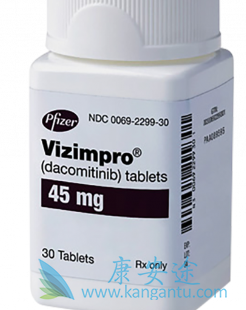 达克替尼目前已被批准用于具有表皮生长因子受体(EGFR)外显子19缺失或外显子21 L858R取代突变的转移性非小细胞肺癌(NSCLC)患者的一线治疗。达可替尼是一种选择性的,竞争性的,不可逆的三磷酸腺苷(ATP)竞争性小分子抑制剂,它是受体酪氨酸激酶(RTK)家族的HER(ErbB),包括表皮生长因子受体(EGFR,HER1),HER2受体( ErbB2的)时,HER4受体(ErbB4的),以及它们的致癌变体(例如,EGFR与德尔外显子19或L858R突变)。达克替尼已证明在生化激酶测定中可抑制HER1,HER2和HER4,在肿瘤异种移植物中显示HER1剂量依赖性抑制和HER2 RTK磷酸化,并在癌症实验模型中抑制肿瘤生长或消退。