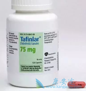 另一项大型III期随机试验在250例先前未经治疗的BRAFV600突变型转移性黑色素瘤患者中比较了BRAF抑制剂达拉非尼和达卡巴嗪,其缓解率(50%[42.4-57.1] vs 6%[1.8-15.5])和无进展生存达拉非尼组(5.1个月和2.7个月[HR:0.3; 95%CI:0.18-0.51,p <0.001])。BRAF抑制剂治疗常见的副作用是关节痛,皮疹,疲劳,皮肤鳞状细胞癌和角化棘皮瘤。比较这两个试验,达布拉非尼似乎比维拉非尼具有更好的耐受性,皮肤毒性的发生率更低。黑色素瘤脑转移患者的治疗证明了BRAF抑制剂在中枢神经系统的疗效,在颅内和颅外疾病中的反应相似。
