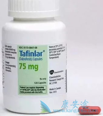 达拉非尼(dabrafenib)是BRAF丝氨酸/苏氨酸激酶的一种可逆的,高效ATP竞争性抑制剂,参与有丝分裂原激活的蛋白激酶(MAPK)途径的调节。达布拉非尼的开发专门针对BRAF的V600E激活突变(BRAFV600E),该突变在超过40%的黑色素瘤中观察到,可能有助于疾病的发展。体外研究报道,BRAFV600E的IC50值为0.65 nM。