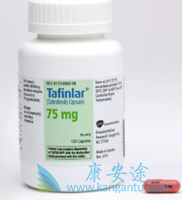 每天两次剂量为150 mg,给药后2 h记录最大血浆浓度,平均终末半衰期为5.2 h。在配对的肿瘤活检中,使用70–200 mg达拉非尼治疗的8例患者中,磷酸化ERK的中位抑制率为基线的83.9%。