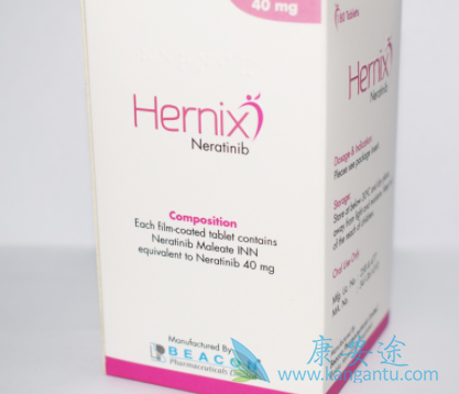 来那替尼(neratinib)是一种有效的、不可逆的人表皮生长因子受体 (HER 或 ERBB) 1、2 和 4 酪氨酸激酶抑制剂。单剂来那替尼是有效的转移性HER2阳性乳腺癌治疗,包括曲妥珠单抗幼稚和曲妥单抗预处理的患者和HER2突变阳性乳腺癌。在转移性 HER2 阳性乳腺癌的一线治疗中,来那替尼加紫杉醇与曲妥珠单抗加紫杉醇具有相似的疗效,但显着延迟了发病并降低了中枢神经系统进展的频率。